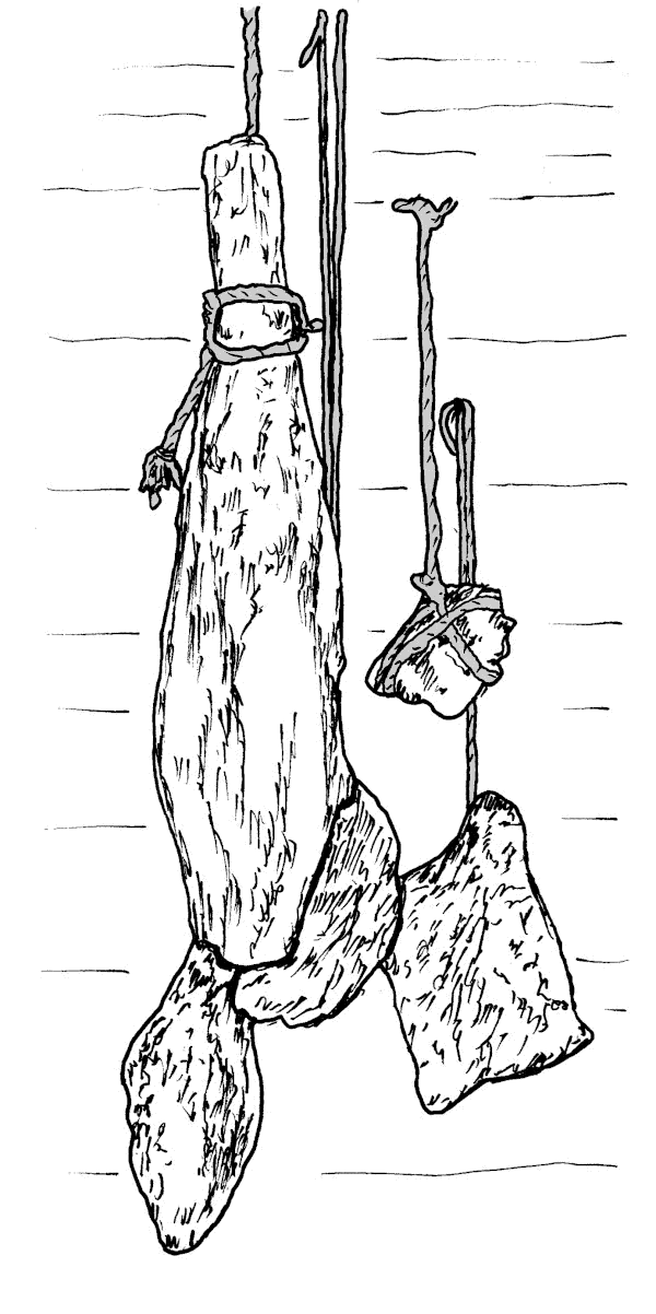Everybody who could not afford expensive, imported, hemp made rope out of whatever they could find. The woods and fields provided numerous fiber sources for home and farm needs. Everyday Colonial life required plenty of rope. Rope to lower the bucket into the well. Rope for the handle of the bucket, rope to bind up brooms. Rope to hang hams and bacon in the smokehouse. Cord to drive spinning wheels. If you lived in town, in a large house, then you also needed rope to support the mattress in the bed and rope for the window sash weights. You might even use rope for clotheslines, but it was more common to dry clothes on bushes, since clothespins hadn't been invented yet.